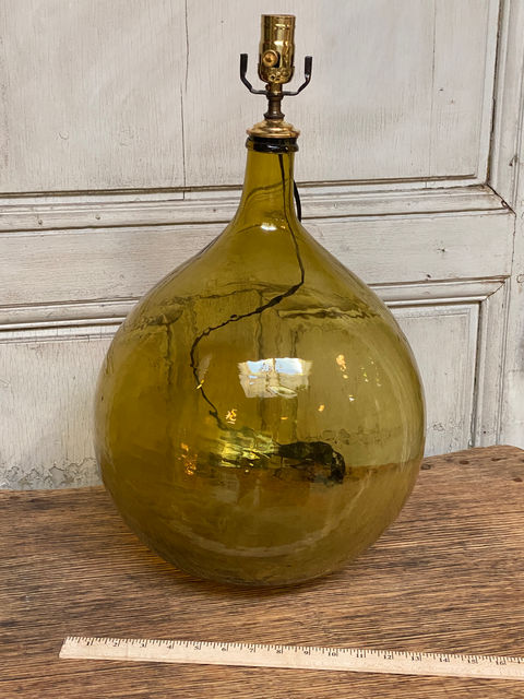 Antique French Bourgogne mid 19th century hand blown wine demijohn "bonbonne" converted into a lamp