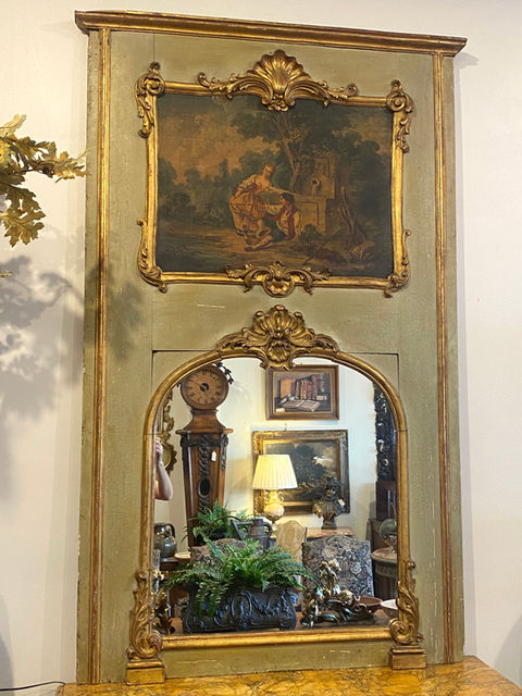 Antique French early 19th century Provincial Louis XVI style painted trumeau with painting
